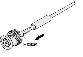 介紹直式BNC公接頭與同軸電纜的裝配步驟。