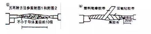 4.先用不同塑料絕緣膠帶對纏繞部分包扎兩層,包扎要緊,亞敏粘膠帶(黑色)包扎三層,每包扎一層用手擠壓一次,保證包扎質量,最后用塑料絕緣膠帶包扎兩層即可。