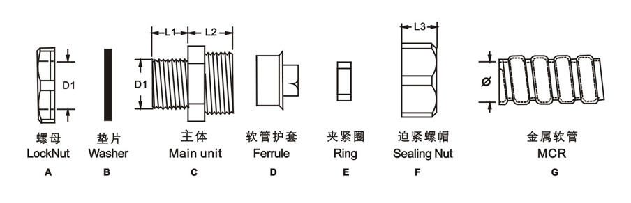 特點:一端連接金屬軟管,另一端由螺紋連接箱體或設(shè)備,具有結(jié)構(gòu)緊湊,防水,耐腐蝕等特點。
